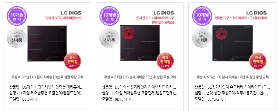 엘지 디오스 인덕션 제품을 예로 들면...